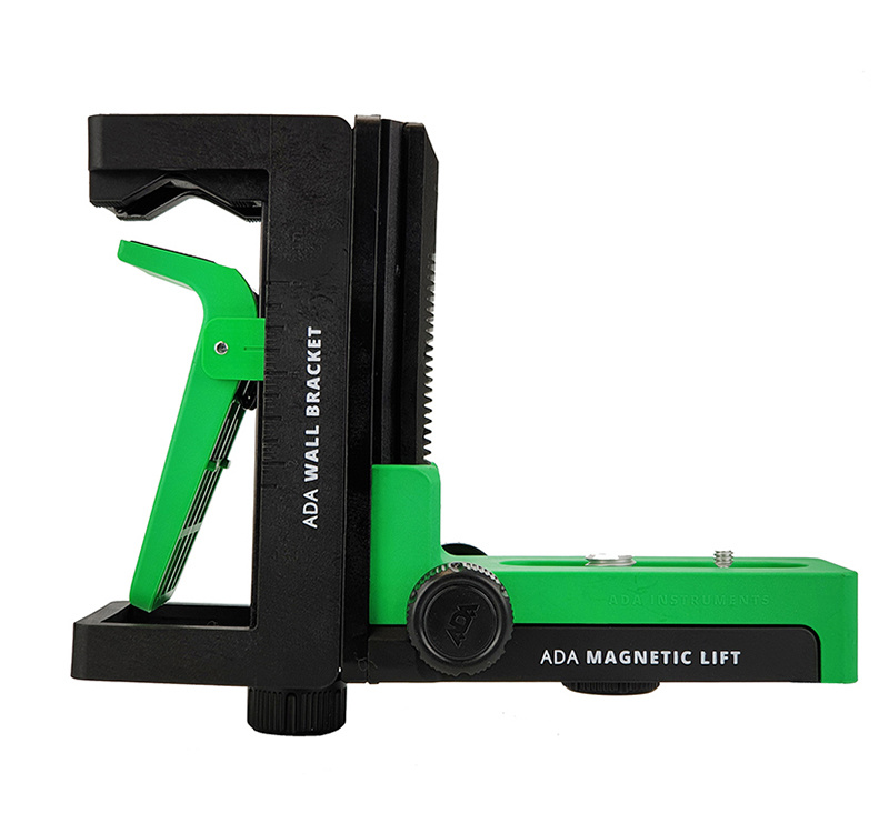 ADA BASE (MAGNETIC LIFT + WALL FIXING) ist eine universelle Halterung mit Micro-Lift für die Montage des Lasers auf allen Oberflächen und Höhen. Es besteht aus zwei Teilen: ADA MAGNETIC LIFT (Magnethalterung mit Micro-Lift für Laser bis zu 1 kg) und ADA WALL FITTING (Schnellverschluss-Schraubklemme mit Schnappverschluss bis 55 mm. Für Laser bis zu 2 kg auf MAGNETIC LIFT).