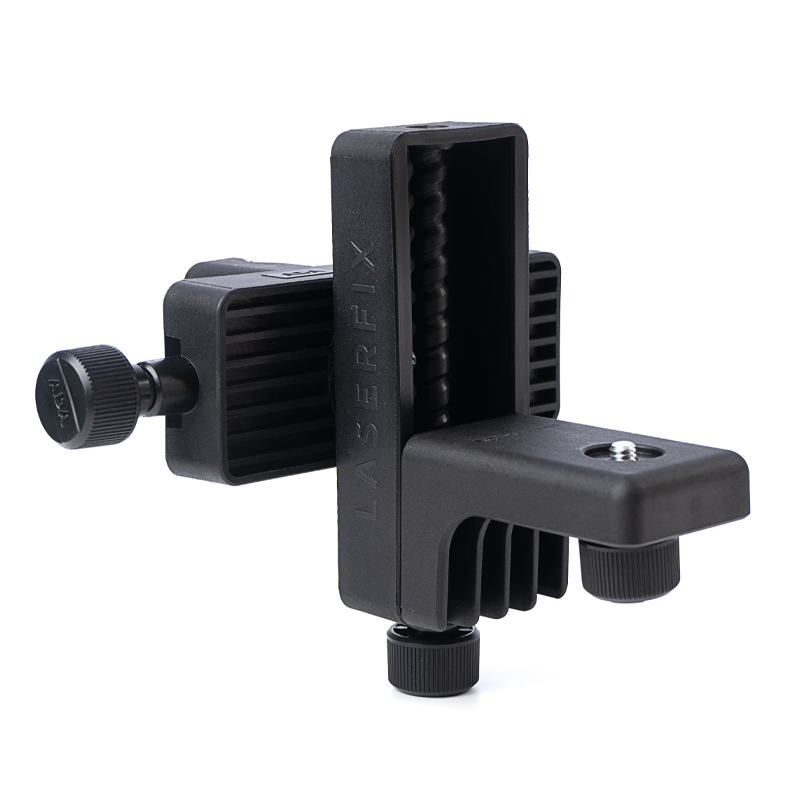 Leichte und kompakte Universalhalterung mit Mikroaufzug für Laser-Nivelliere (bis zu 1 kg) mit 1/4-Zoll-Gewinde.