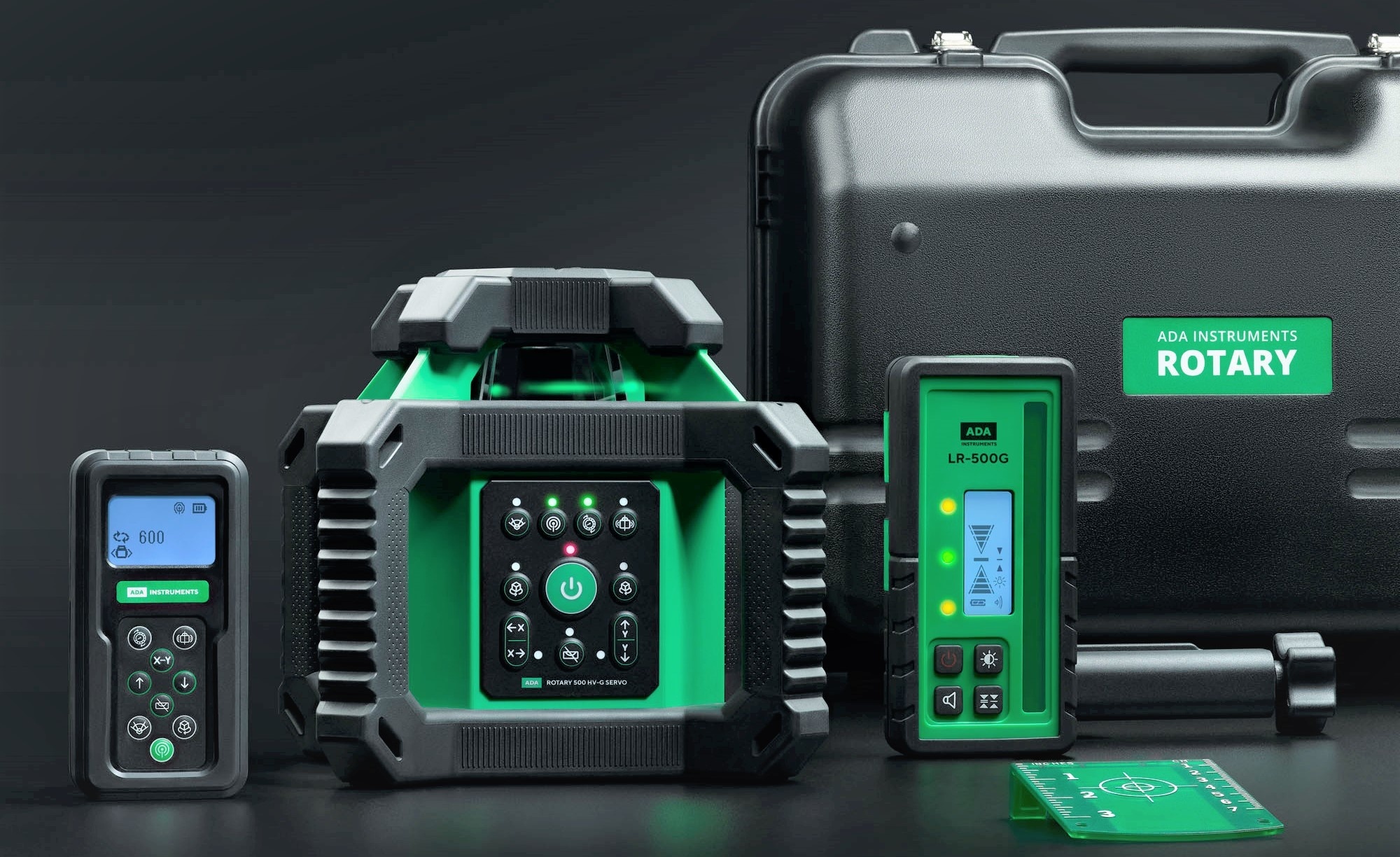 Laser Level ADA ROTARY 500 HV-G Servo is a rotary construction level with electronic compensator on servo drives. The servodrives provide the accuracy of ±0.1 mm/m and the slope adjustment range of up to ±5°.